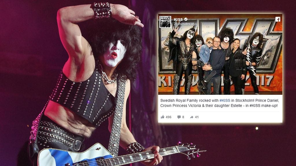 – Ruotsin kuninkaalliset rokkasivat Kissin kanssa Tukholmassa. Prinssi Daniel, kruununprinsessa Victoria ja Estelle – Kiss-meikeissä! kuvapäivityksessä intoillaan.