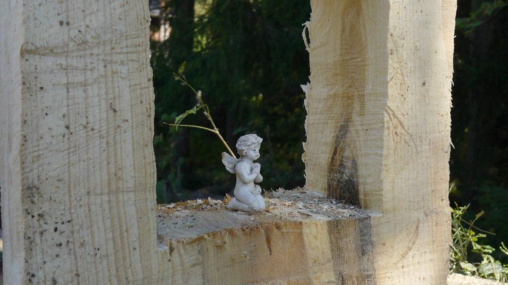 Turmapaikalle puunharvennukseen tullut metsuri halusi kunnioittaa pienen tytön muistoa veistämällä pienen alttarin kaadetun puun kantoon. Samalla hän haluaa muistuttaa autoilijoita liikenneturvallisuudesta.