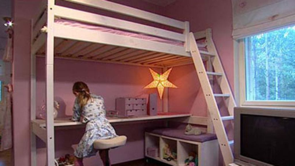 Muutoksessa yhdestä huoneesta muokattiin kaksi tilaa. Aikaisemmin huone oli suunniteltu kahdelle leikki-ikäiselle, mutta nyt koululainen tarvitsi oman tilansa. Lapset toivoivat voivansa nukkua samassa huoneessa, mutta halusivat kuitenkin omaa tilaa erilaisille leikeilleen.