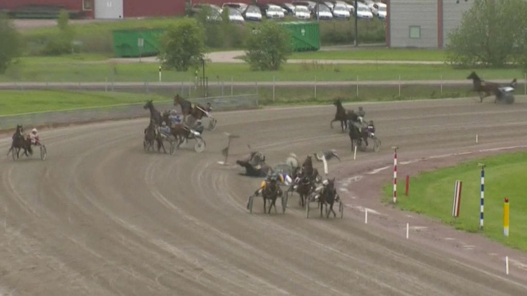 Pian se alkoi myös potkia ja ohjastaja Gustav Wernäng putosi kyydistä. Vauhkoontunut hevonen jatkoi matkaansa kiitolaukalla ja syöksyi suoraan loppusuoralle kaartuneiden kanssakilpailijoidensa sekaan.