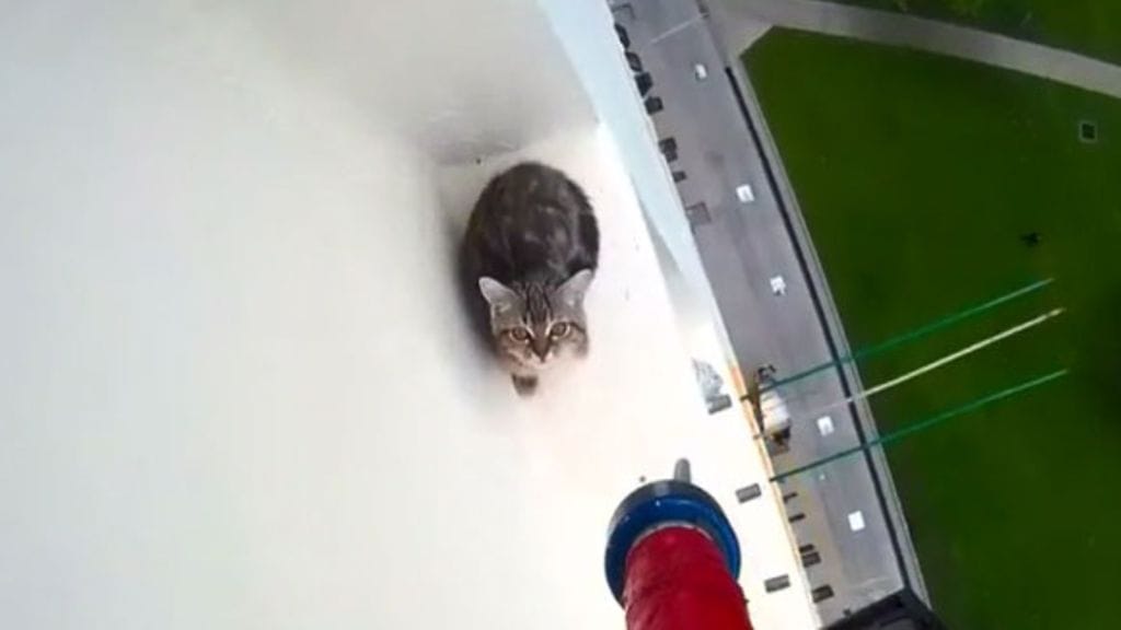 Paikalle kutsuttiin paikallinen eläintenpelastusjärjestö, joka myös kuvasi kissan pelastamisen. Katso video!