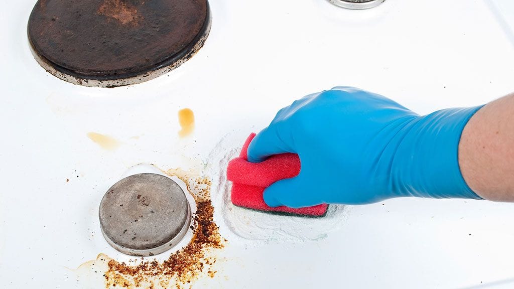 Pinttyneen lieden puhdistaminen ei onneksi vaadi voimaa. Sen sijaan se vaatii ruokasoodaa ja kylmiä hermoja.