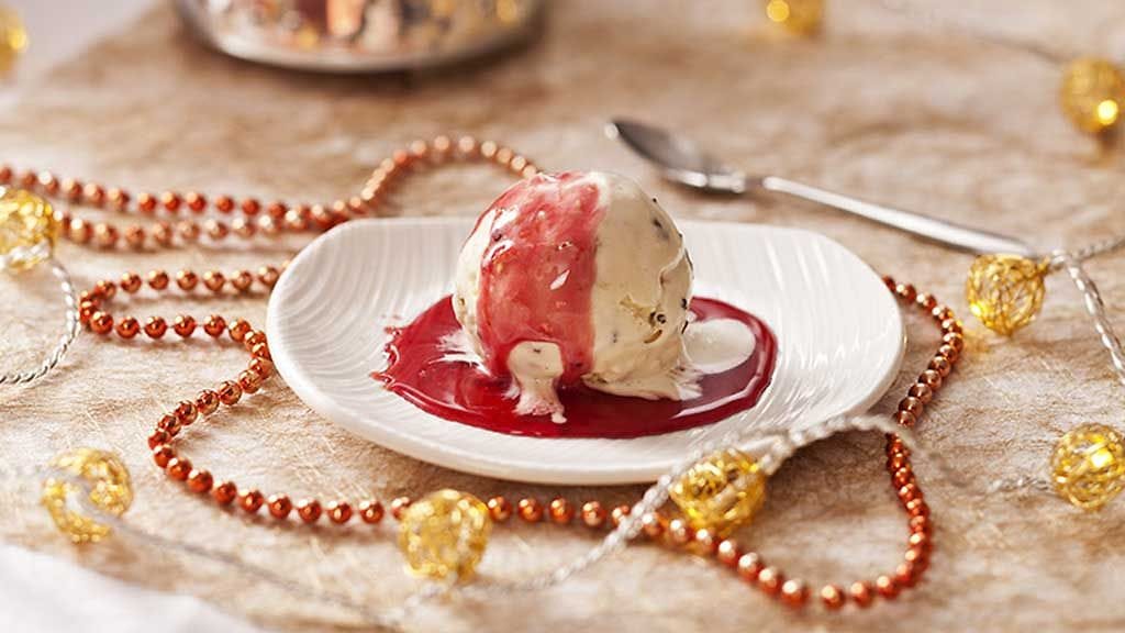 Itse tehty jäätelö saa makua piparitaikinasta. Tee kaveriksi viinimarjasiirappi!