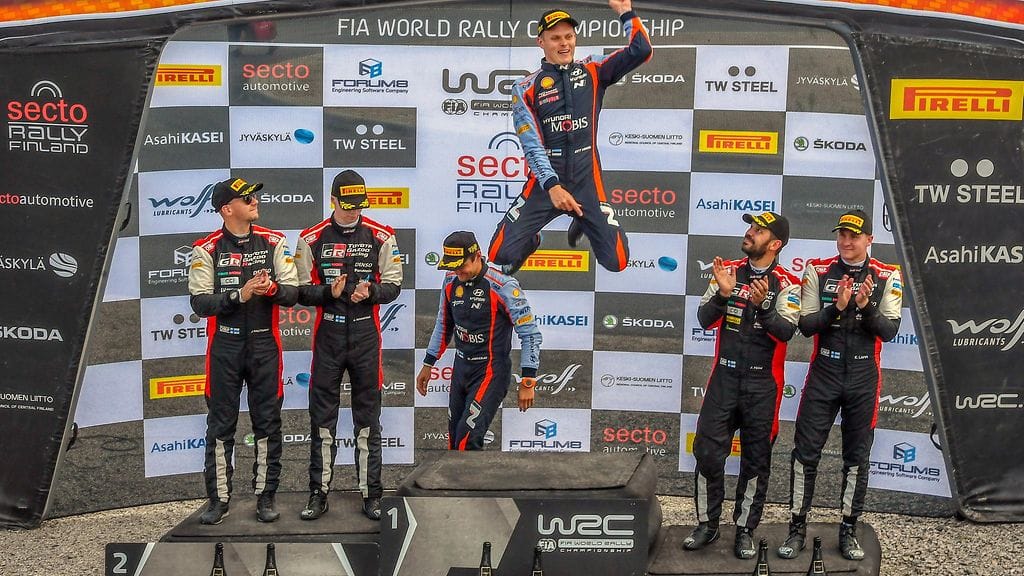 Korealaisvalmistajan virolaistähti Ott Tänak päätti Toyotan vuodesta 2017 jatkuneen voittoputken kukistamalla Kalle Rovanperän 6,8 sekunnin erolla. Hankalan alkukauden jälkeen voitto Keski-Suomen nopeilla sorateillä sai väliaikaisen tallipäällikön Julien Moncetin suun messevään hymyyn.