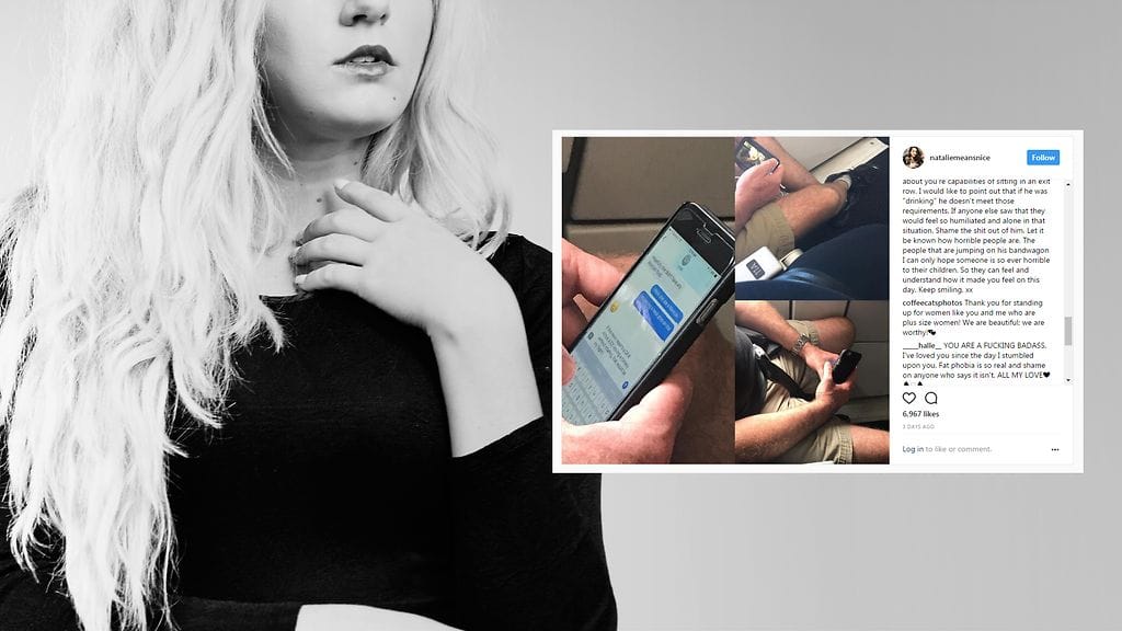 Pluskokoinen malli Natalie Hage koki ahdistavan tilanteen lentokoneessa matkustaessaan Los Angelesiin kuvauksia varten. Hage istui koneessa miehen vieressä, ja huomasi miehen tekstaavan kaverilleen naista koskevia asioita ennen kuin kone oli ehtinyt edes lähteä.
