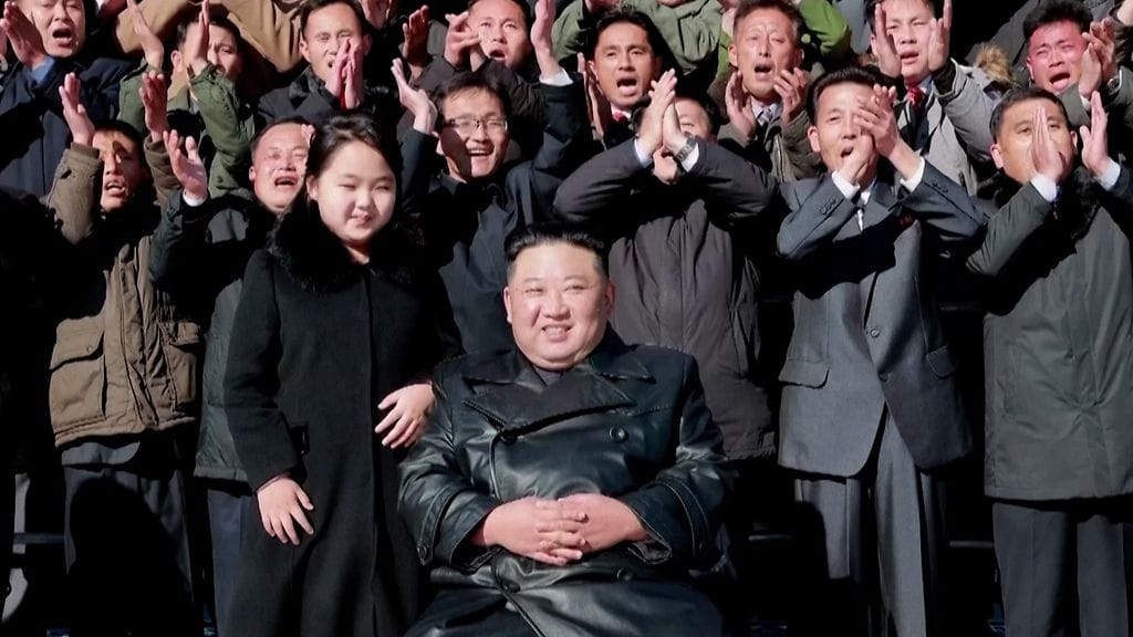 Pohjois-Korea on myös julkaissut uusia kuvia Kimistä, joka poseeraa kameralle ohjuksen edessä yhdessä tyttärensä kanssa upseerien ja tutkijoiden ympäröimänä.
