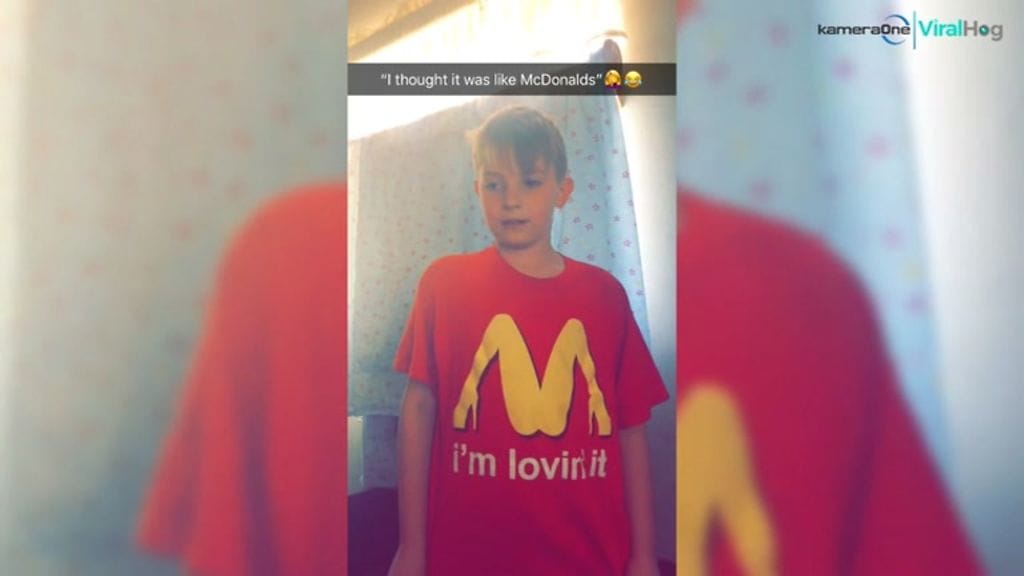 – Hekin luulivat, että se on McDonald'sin paita, poika selittää äidin kuvaamalla videolla.
