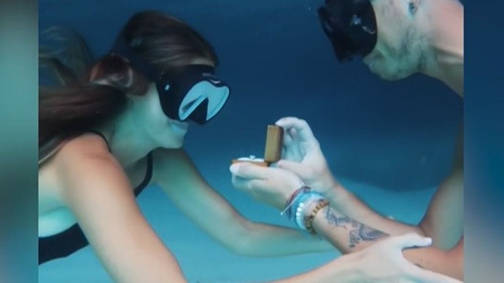 Romanttinen ja täysin ainutlaatuinen kosinta tallentui videolle Karibialla.