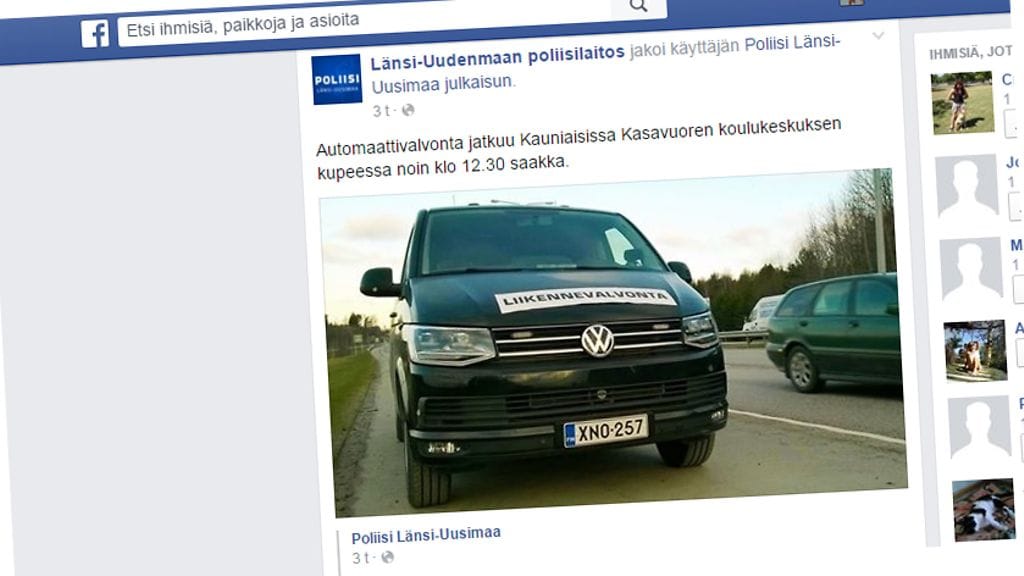 Länsi-Uudenmaan poliisilaitos julkaisi kuvan valvonta-autosta, joka heillä on parhaillaan käytössä.