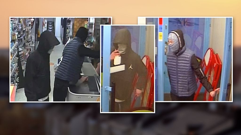 Poliisi jakoi ryöstöstä epäiltyjen kuvat. Poliisi tiedottaa, että kaksi tekijää olivat pukeutuneet tummiin vaatteisiin.