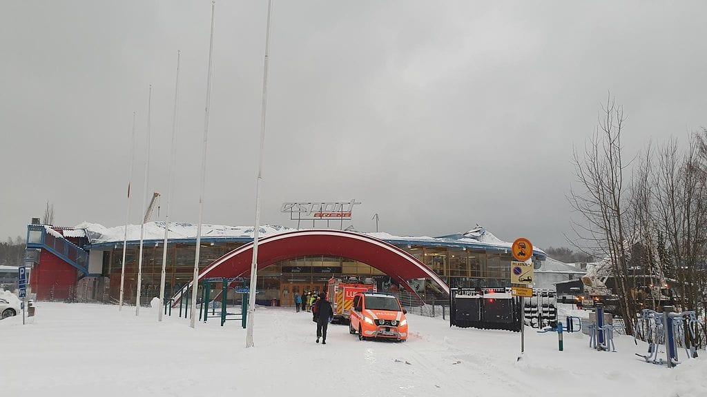Poliisi kertoo, että Espoon Tapiolassa sijaitsevan Esport urheiluareenan katto on romahtanut.