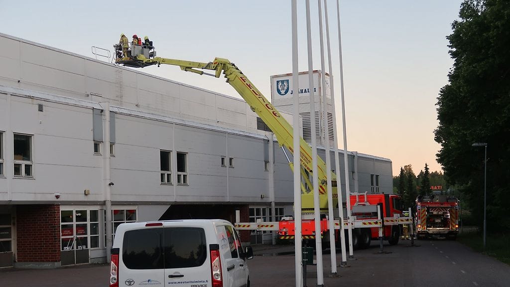 Järvenpään harjoitusjäähallin katolla syttyi yöllä tulipalo.