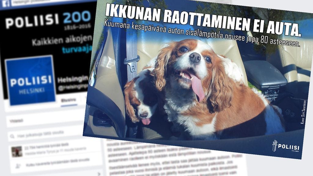 Helsingin poliisilaitos muistuttaa, että lasta tai lemmikkiä ei saa jättää kuumaan autoon.