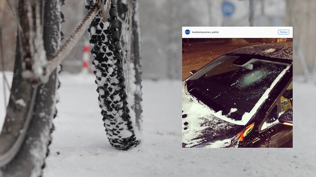 – Tällainen kuvassa näkyvä vaurio on tyypillinen henkilöautossa, joka on törmännyt polkupyöräilijän kanssa. Tuulilasin vaurion on aiheuttanut pyöräilijän päästä tullut osuma, poliisi kertoo Instagramissa.