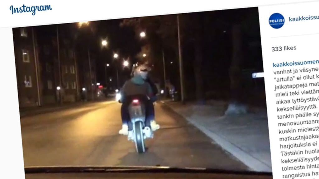 Kaakkois-Suomen poliisilaitos on eilen illalla jakanut videon Instagramissa. Kouvolassa kuvatulla videolla nähdään kevytmoottoripyörän kuljettaja, jolla on vähintäänkin kekseliäs tapa kuljettaa kyytiläistään.