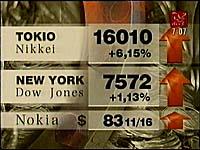 Tokiossa osakkeiden arvoa mittaava Nikkei-indeksi nousi maanantaina aamupäivän aikana 944,85 pistettä. Aamukaupankäynnin päättyessä kello 11 paikallista aikaa Nikkein pisteluku oli 16027,37.