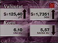 Dollari vahvistui suhteessa Saksan markkaan maanantaina. Dollari noteerattiin Lontoossa kello viideltä Suomen aikaa 1,7347 Saksan markaksi. Perjantaina dollari noteraattiin 1,7260 Saksan markaksi. Dollarin arvo laski suhteessa Japanin jeniin. Dollari noteerattiin maanantaina 124,55 jeniksi ja perjantaina 125,90 jeniksi.
