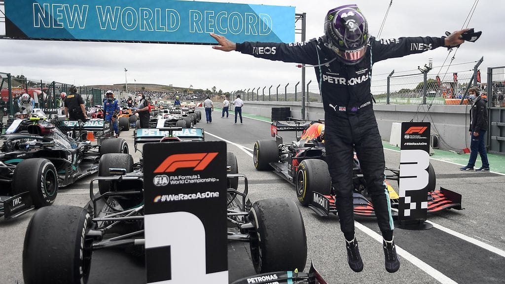 Paalupaikalta startannut Hamilton ajoi Portimãon radalla kauden kahdeksannen voittonsa ja nosti koko F1-uransa voittosaldon 92:een. Näin hän nousi yksinään kaikkien aikojen voittotilaston ykköspaikalle.