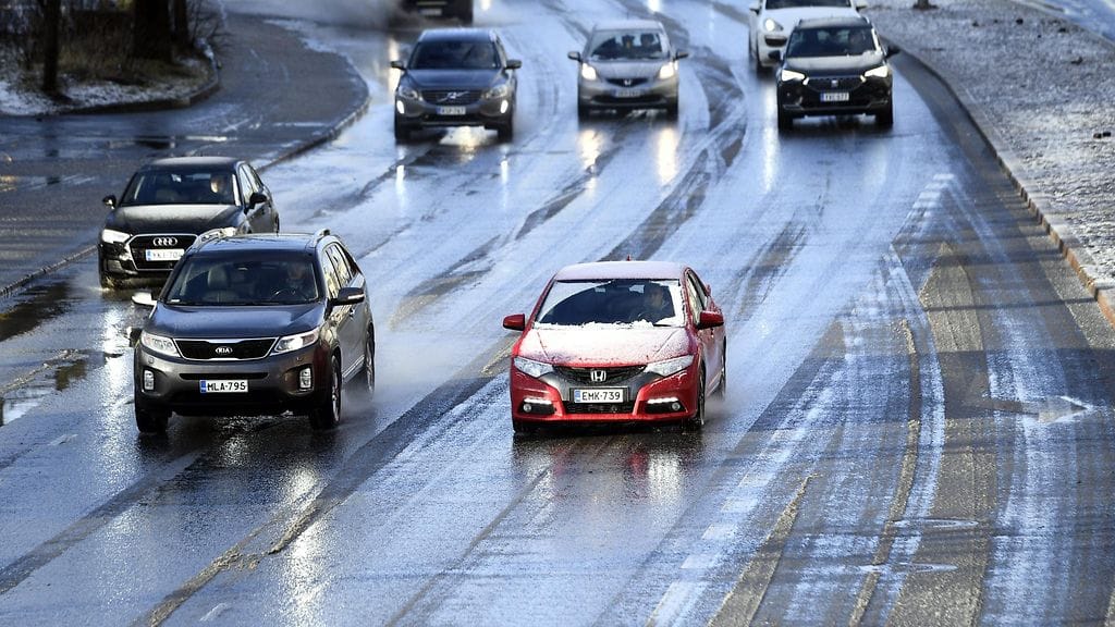 Ajokeli oli aamulla Etelä-Suomessa erittäin huono runsaan lumi- ja räntäsateen takia.