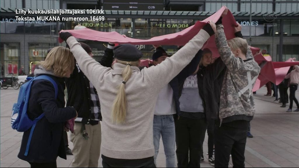 Possen Jarno, Jaska, HP, Viivi ja Jarppi järjestivät Helsingin keskustaan tempauksen syövän voittamiseksi.