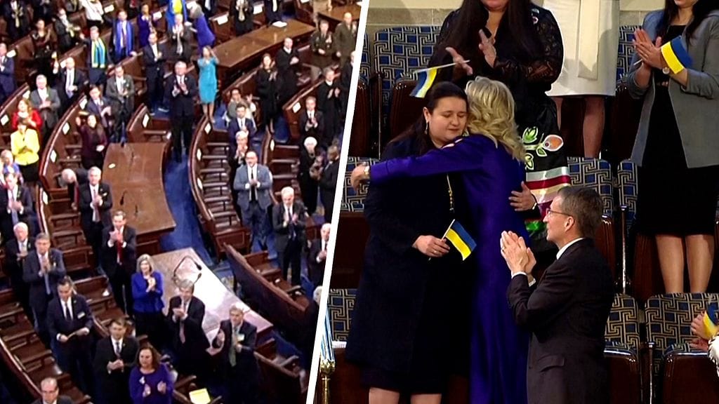 Yhdysvaltain presidentti Joe Biden piti vuotuisen Kansakunnan tila -puheensa kongressitalossa, jossa koettiin tunteikas suosionosoitus.