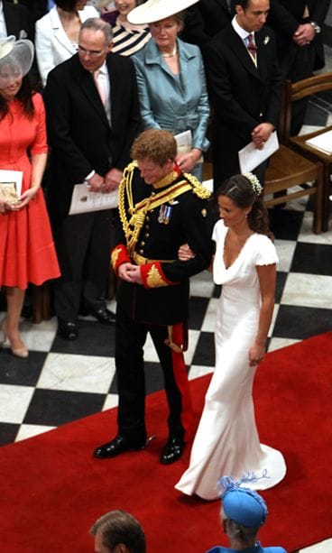 Hääseurueen poistuessa Westminster Abbeysta prinssi Harry nappasi herrasmiehen elkein talutettavakseen Pippa Middletonin, Catherinen siskon. Vastanaineen kuninkaallisen parin jäljessä astellut kaksikko vaikutti hilpeältä ja rennolta.