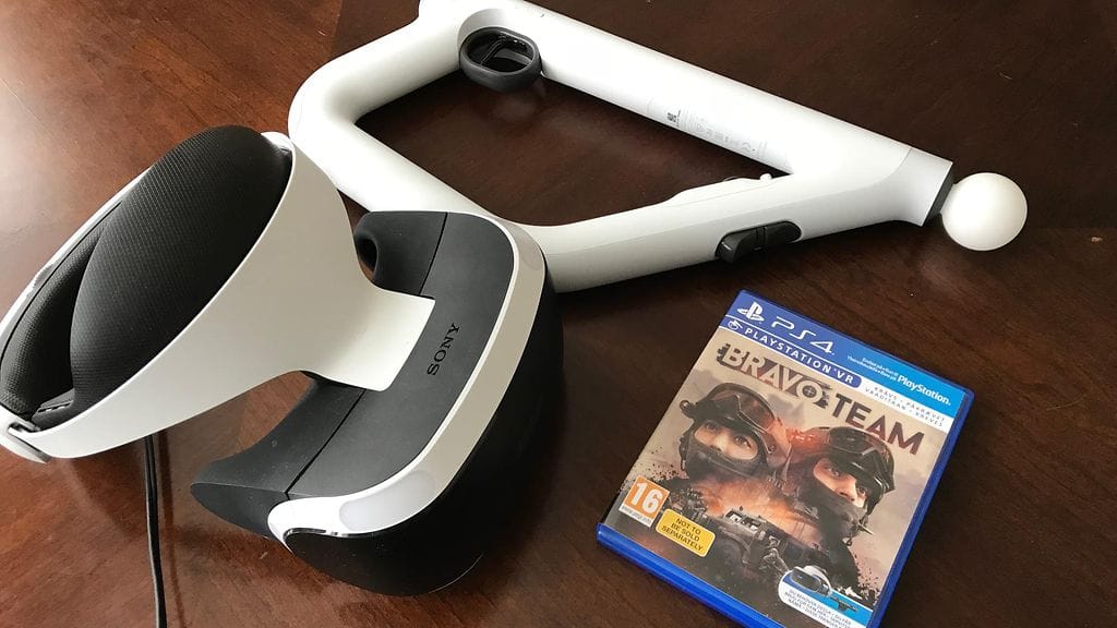 Bravo Team tukee PlayStation VR:n näppärää tähtäinohjainta. Tosielämässä lähinnä pölynimurin varrelta näyttävä muovinen kapistus muuttuu virtuaalimaailmassa kovan luokan aseeksi, jonka värinäpalaute auttaa luomaan yllättävän aitoa tunnelmaa laukausten ampumisesta.