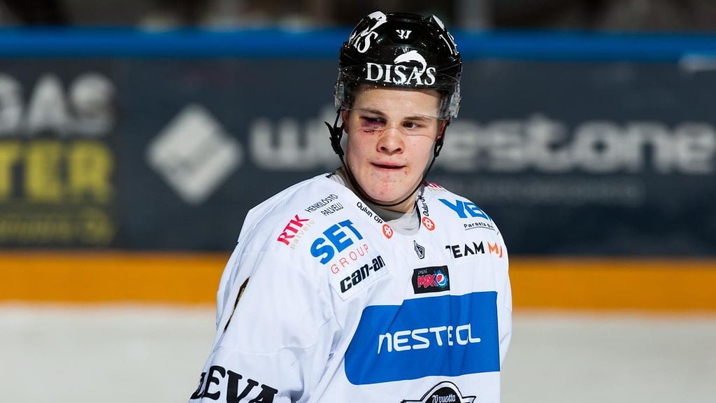 Jesse Puljujärvi joutui kovan taklauksen kohteeksi perjantaina jääkiekon SM-liigassa, kun TPS:n Olli Malmivaara taklasi Kärppien superlupausta suoraan päähän.
