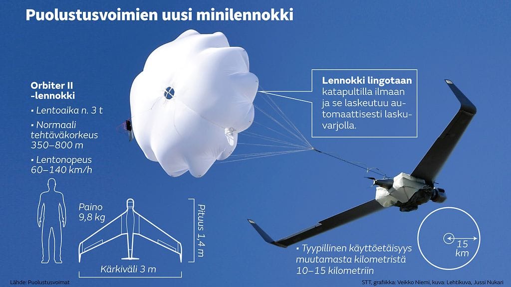 Puolustusvoimat esitteli tänään Santahaminassa Helsingissä verrattain uutta minilennokkijärjestelmää, joka vakoilee vihollisen liikkeitä jopa 800 metrin korkeudesta.