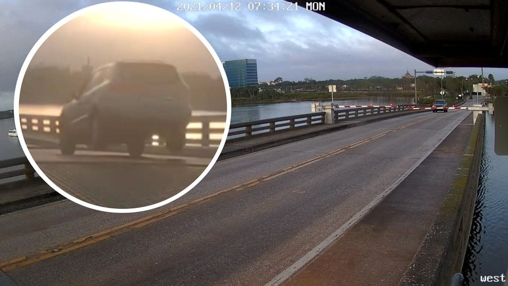 Yläpuolelta löytyvältä videolta on nähtävissä, kuinka auto ajaa porttien lävitse ja käy hetken ilmassa samalla, kun sillan molemmat päädyt aukenevat. Kärsimätön autoilija pääsi kuin pääsikin sillan ylitse, mutta täpärästi.