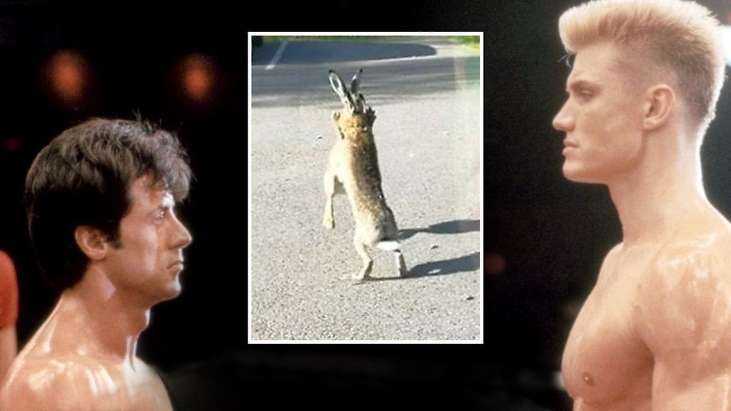 Kaksi isoa jänistä on joko leikkisällä tai riidanhakuisella tuulella Keravalla kuvatussa videossa, jossa nyrkit tai paremmin sanottuna tassut viuhuvat.