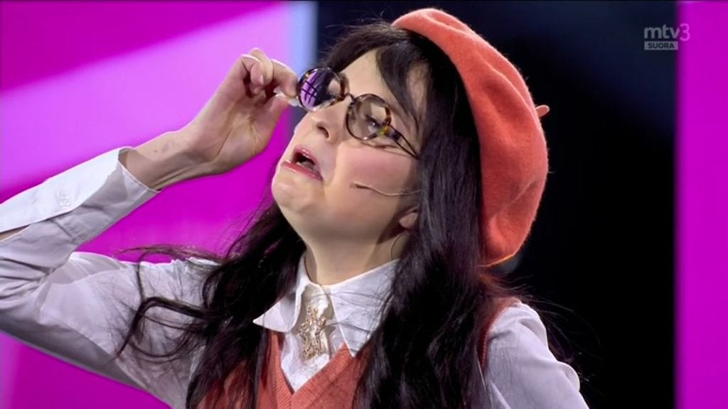 Putouksen ensikertalainen Maaria Nuoranne esitteli sketsihahmonsa suorassa lähetyksessä.