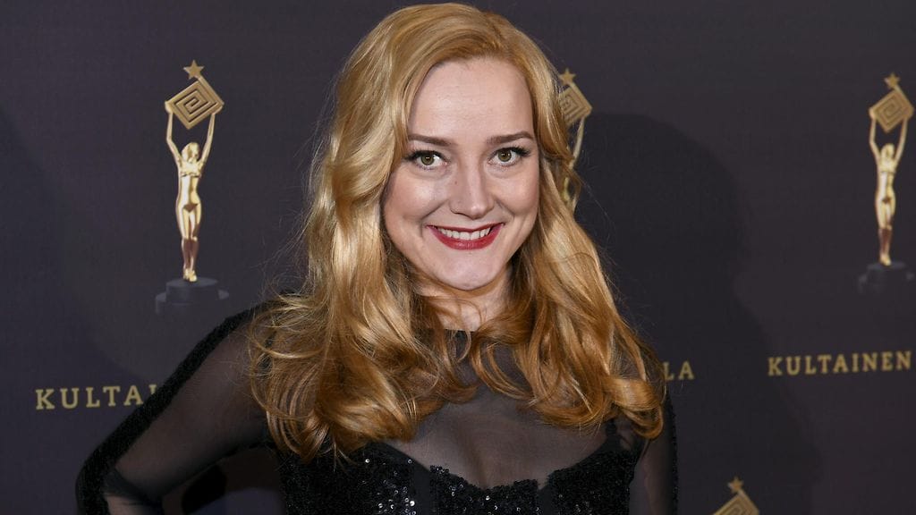 Putous-tähti Pilvi Hämäläinen otti kantaa Kultaisen Venlan asuvalinnallaan. Nainen oli pukeutunut punaiselle matolle mustaan.