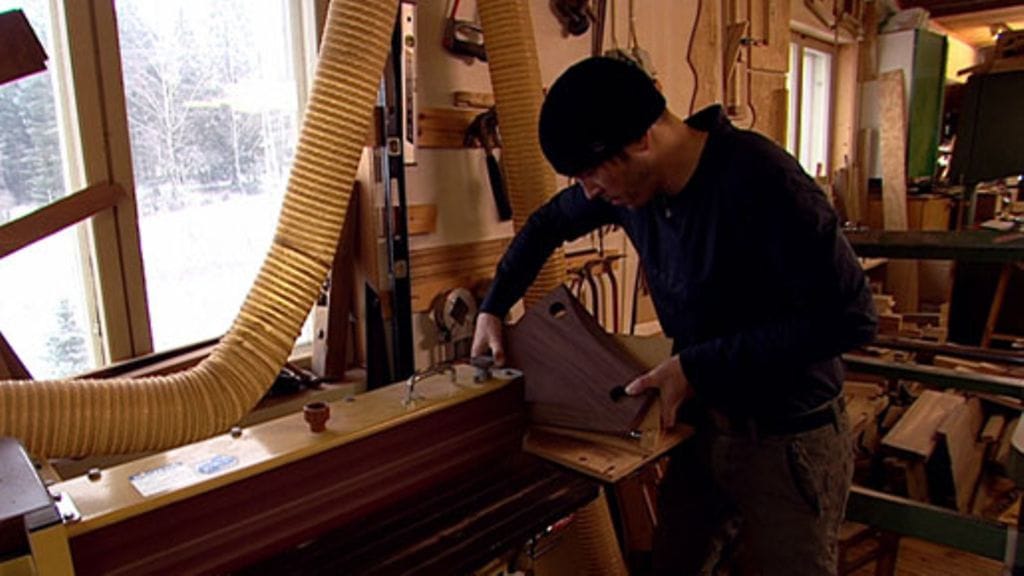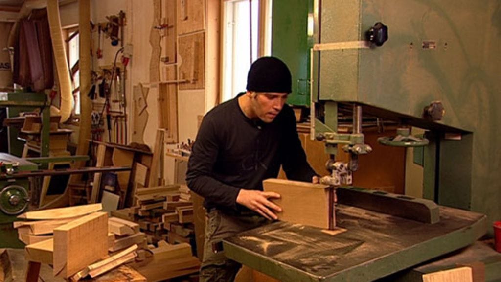 Uolevi Nurmi on nuori artenomipuuseppä, joka tekee työtään omalla Osmansolmu puuverstaallaan Halikossa.