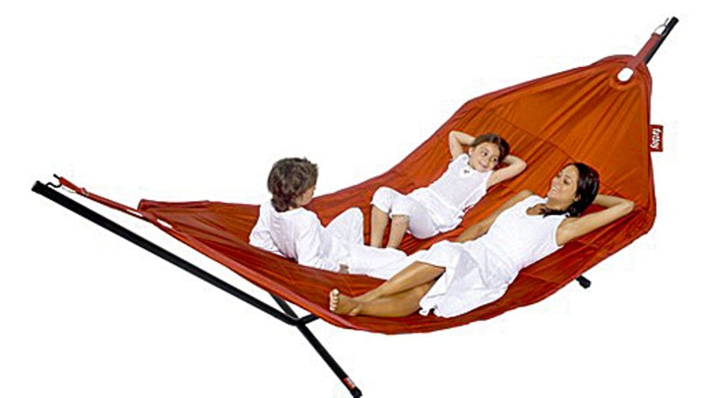 Riippukeinu koivujen katveessa lienee jokaisen lomailijan kesäinen haave. Fatboyn Headdemock on trendikäs uutuus, joka toimii ilman puita tai erillisiä koukkuja. Keinuun kuuluu tukeva teline, joten sijoituspaikka ei ole ympäristöstä riippuvainen. 140 senttiä leveään ja 280 senttiä pitkään riippukeinuun mahtuu hyvin kaksi aikuista yhtä aikaa.