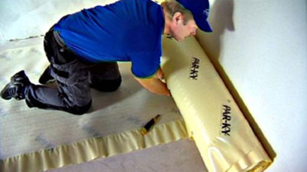 Asukkaat olivat valinneet HDF-runkoisen, pintaviilutetun lattian, joka oli ympäripontattuna nopea ja näppärä asentaa. Se asennettiin uivana ja alle levitettiin solumuovinen askeläänieriste ja (koska alla oli kipsivalu) kosteussulkumuovi, aivan kuten betonilattiankin kohdalla tehtäisiin. Lattian pinnassa saa olla heittoa enintään +/- 1,5 millimetriä kahta metriä kohden, mutta kipsivalu osoittautui niin suoraksi, ettei erillistä tasoittamista tarvittu.