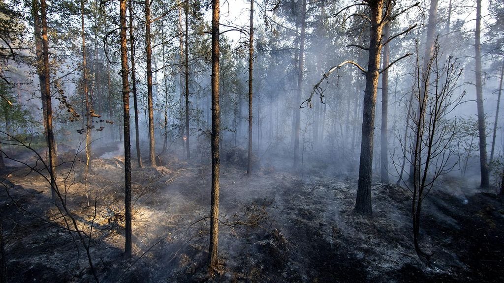 Virto pelkää, että alueelle tulee luvatun sateen lisäksi myös ukkosta ja tuulenpuuskia, jotka voivat kaataa pahasti palaneita puita palomiesten päälle.