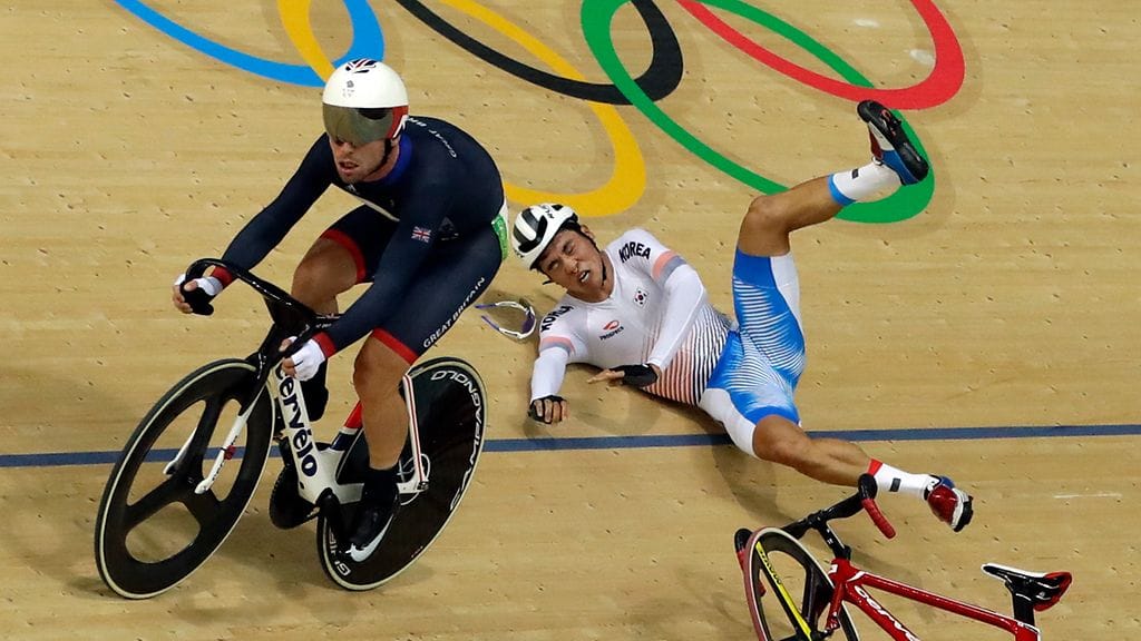 Rion olympialaisten ratapyöräilyn omnium-kilpailu sai ruman käänteen, kun lajin suurimpiin tähtiin kuuluva Mark Cavendish ajoi kilpailijansa nurin vakavin seurauksin.