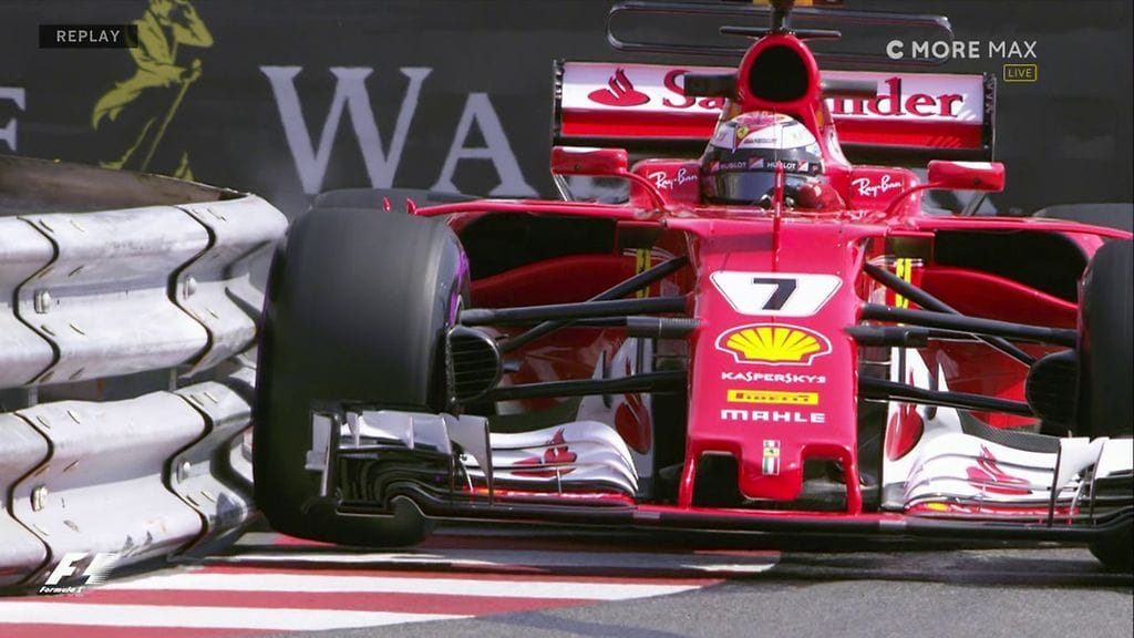 Kimi Räikkösen millintarkka hipaisu kaiteisiin oli ihme kyllä ainoa seinäkosketus, kun entistä leveämmät F1-autot rymistelivät ensimmäiset kierroksensa Monacon kapealla katuradalla.
