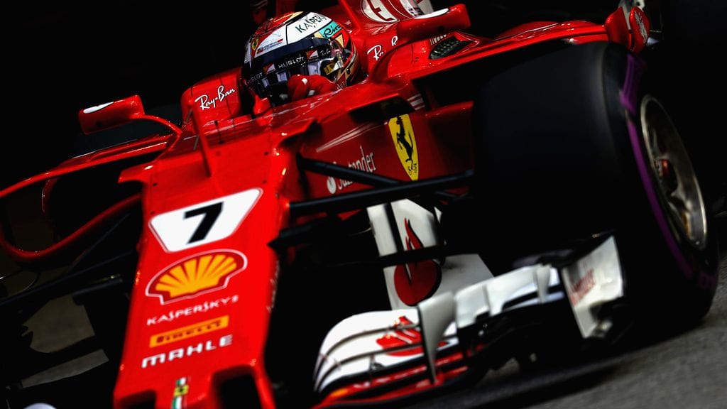 Kimi Räikkönen oli neljäs ja Valtteri Bottas kuudes formula ykkösten Singaporen GP:n aika-ajoissa. Ferrarin Sebastian Vettel onnistui lyömään ennakkosuosikeiksi nousseet Red Bullit ja valtaamaan paalupaikan.