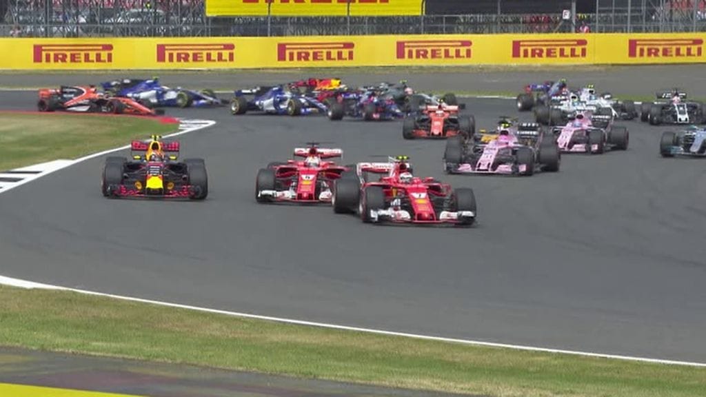 Ensimmäisellä kierroksella myös rytisi, kun Toro Rosson Daniil Kvjat ja Carlos Sainz osuivat toisiinsa. Kvjat ajautui nopeissa Maggots ja Becketts -mutkissa hieman ulos radalta ja palatessaan radalle hän kilkkasi Sainzin ulos. Kvjat pystyi jatkamaan kisaa, mutta Sainz joutui keskeyttämään. Tilanne toi turva-auton radalle.