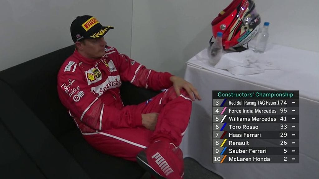 Kimi Räikkönen oli äärimmäisen pettyneen oloinen selvittäessään Britannian GP:n lopputapahtumia Lewis Hamiltonille ja Valtteri Bottakselle.