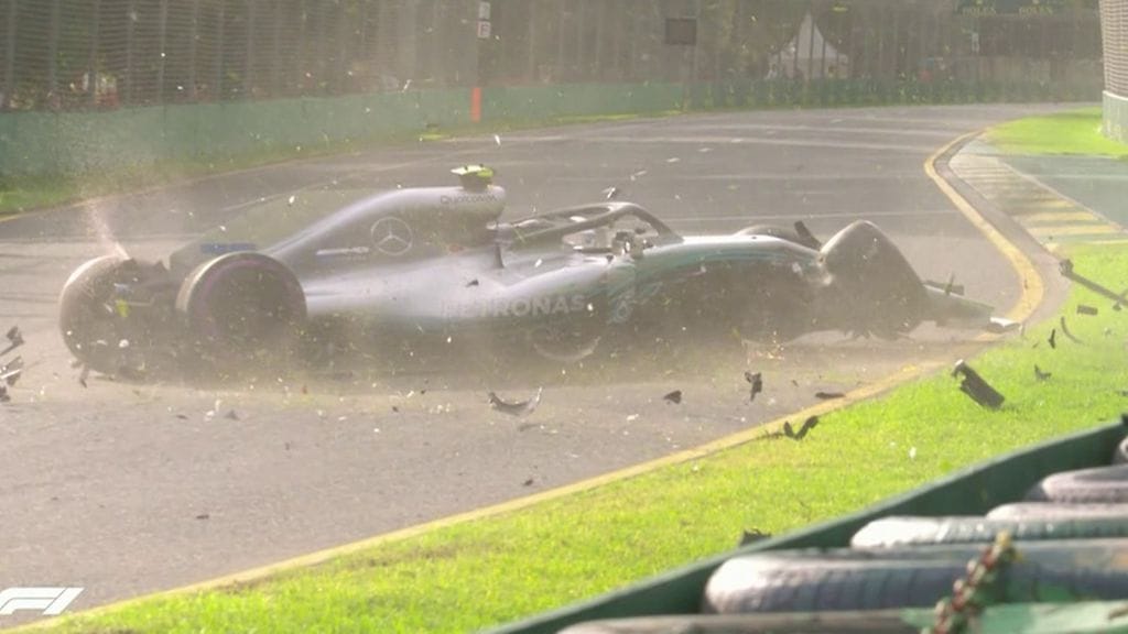 Valtteri Bottaksen kausi formula ykkösissä sai karun alun, kun suomalaiskuski rusikoi Mercedeksensä seinään Australian GP:n aika-ajoissa. Kimi Räikkönen ylsi puolestaan komeasti toiseen lähtöruutuun.