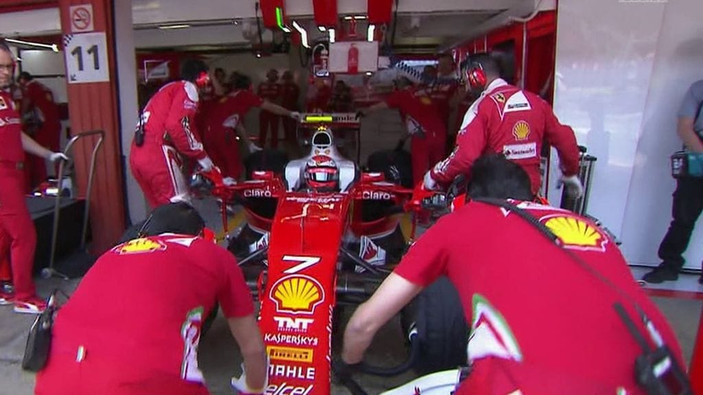 Kimi Räikkönen pyydettiin palaamaan varikolle formula ykkösten Barcelonan harjoituksissa.