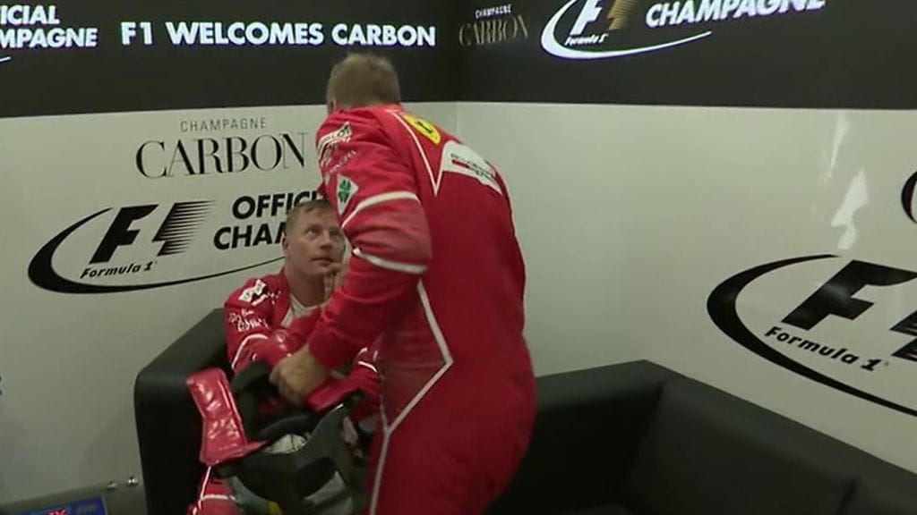 Kilpailun jälkeen Ferrari-kuskit kohtasivat erittäin lämpimissä merkeissä lämpiössä. Räikkönen hymyili iloisesti, kun Vettel tuli onnittelemaan suomalaista kaksoisvoitosta.