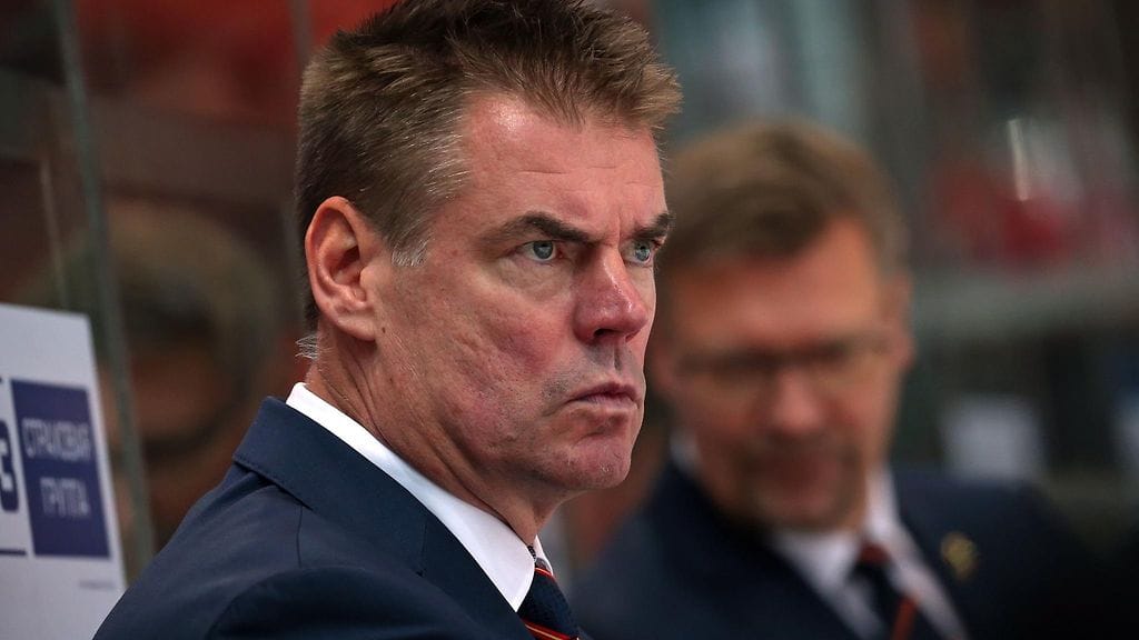 Leijonien valmennusjohtoon kuuluva Raimo Helminen otti lauantain välipäivän treeneissä osaa pelaajien maalintekoharjoitukseen.