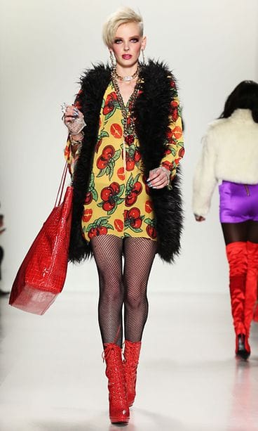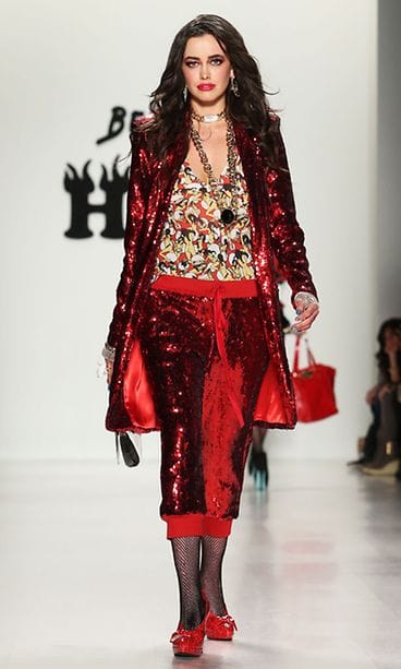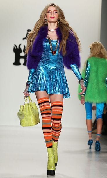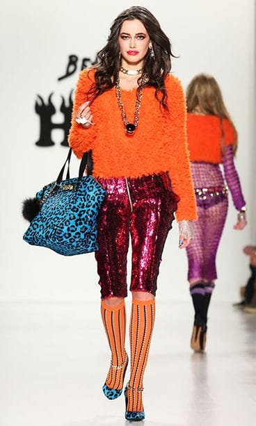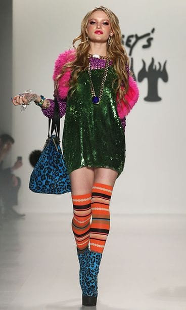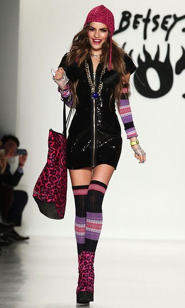 Unohda tulevana syksynä hillitty ja hallittu tyyli, luonnollisen ruskeat ja harmaat sävyt – nimittäin legendaarisen Betsey Johnsonin Betsey's Hot -mallistosta ei rajuja värejä, paljetteja, pitsiä, niittejä ja polvisukkia puuttunut.