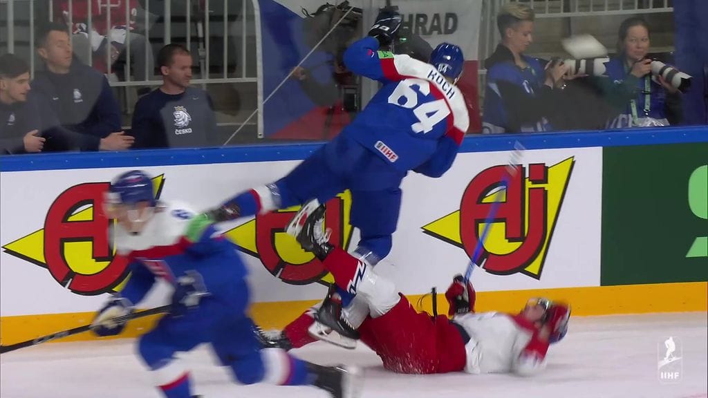 Tshekki koki kovia jo 3–2-voittoonsa päättyneen Slovakia-ottelun avauserässä, kun ensin Filip Chlapik jäi Patrik Kochin karmean taklauksen alle. Myöhemmin slovakialainen Mislav Rosandic taklasi polvella Jiri Cernochia ulosajon arvoisesti.