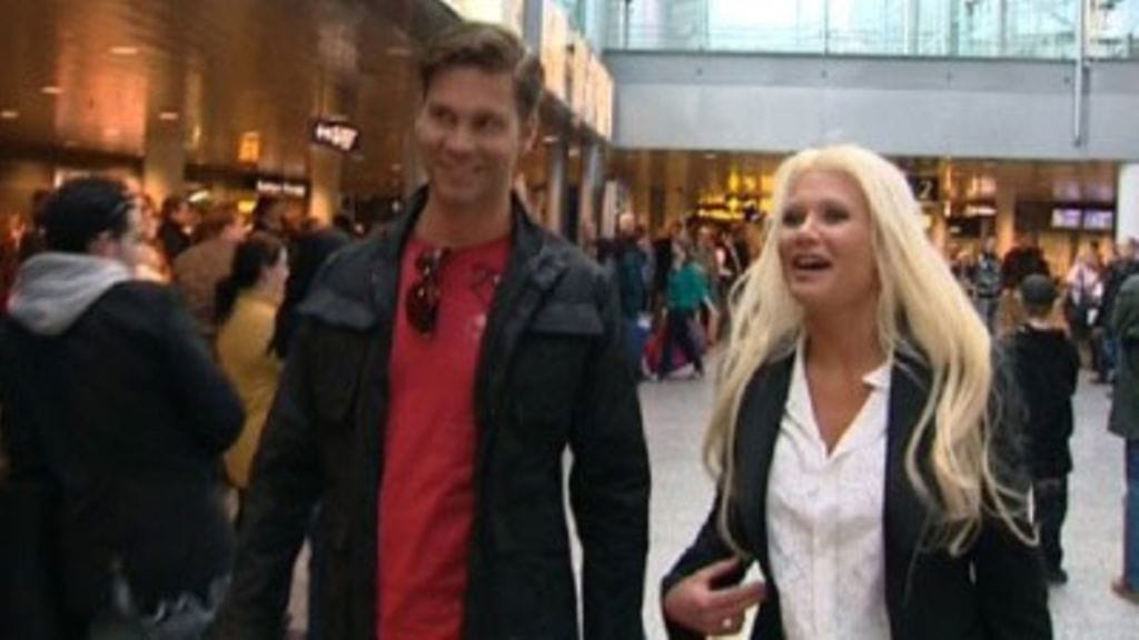 Tuore rouva ei peitellyt onneaan edes Helsinki-Vantaan lentokentällä, vaan suuteli aviomiestään pitkään ja hartaasti suoraan suulle.