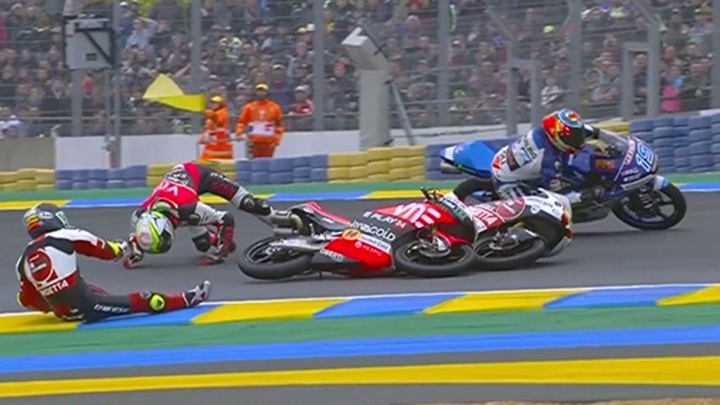 Ranskan Moto3-luokan osakilpailussa riitti vauhtia ja vaarallisia tilanteita.